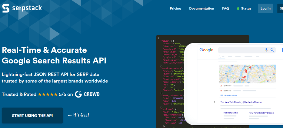 Serpstack allows you to gather targeted SERP data in real-time and at scale. It extracts data using state-of-the-art web scraping technologies, alongside advanced proxy network and CAPTCHA solving techniques.